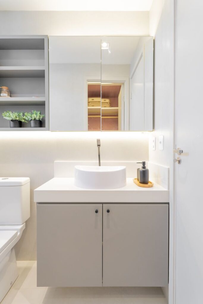 Gabinetes modernos e funcionais para o seu banheiro, com diversos modelos.