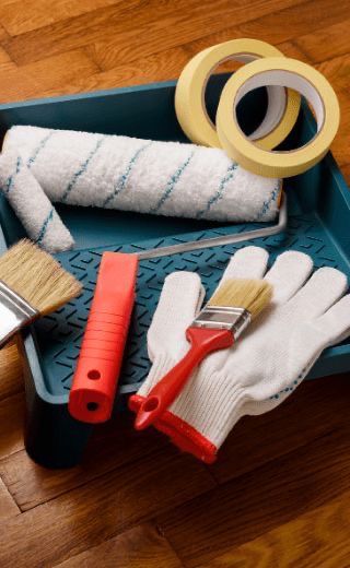 Tintas, rolos, pincéis e tudo que você precisa para pintar e renovar seus ambientes.